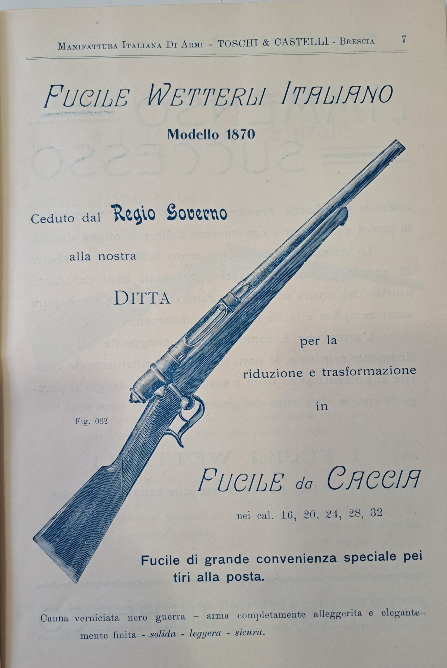 Nevertheless, this system proved capable of adapting to the evolving scenario shaped by the ongoing technological evolution of firearms. Between 1887 and 1889, in an effort to limit the growing circulation of fast-firing, concealable revolvers, the Italian government introduced a substantial distinction between carrying rifles for hunting and recreational purposes, and carrying pistols for personal defence, which was only allowed upon demonstration of legitimate reasons.